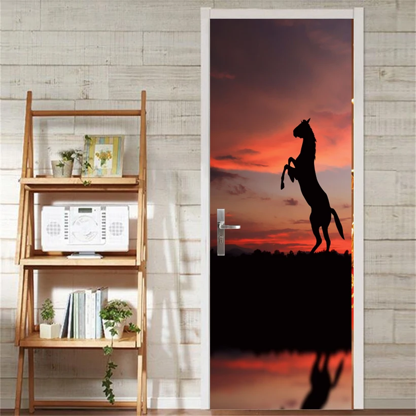 3D Prints Horse Poster PVC Waterproof Entire Door Sticker Creative Stickers Door Wall Sticker DIY M